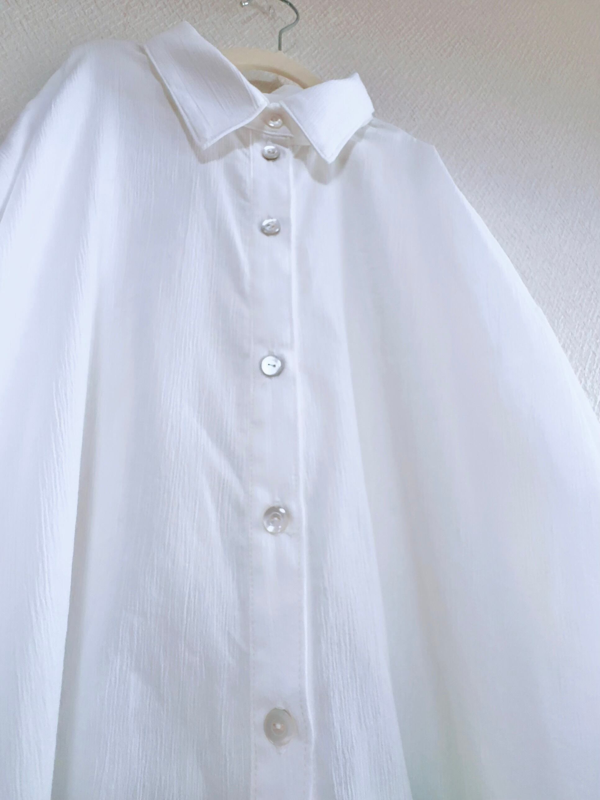 シャリ感と透け感があるコットンで上のシャツを