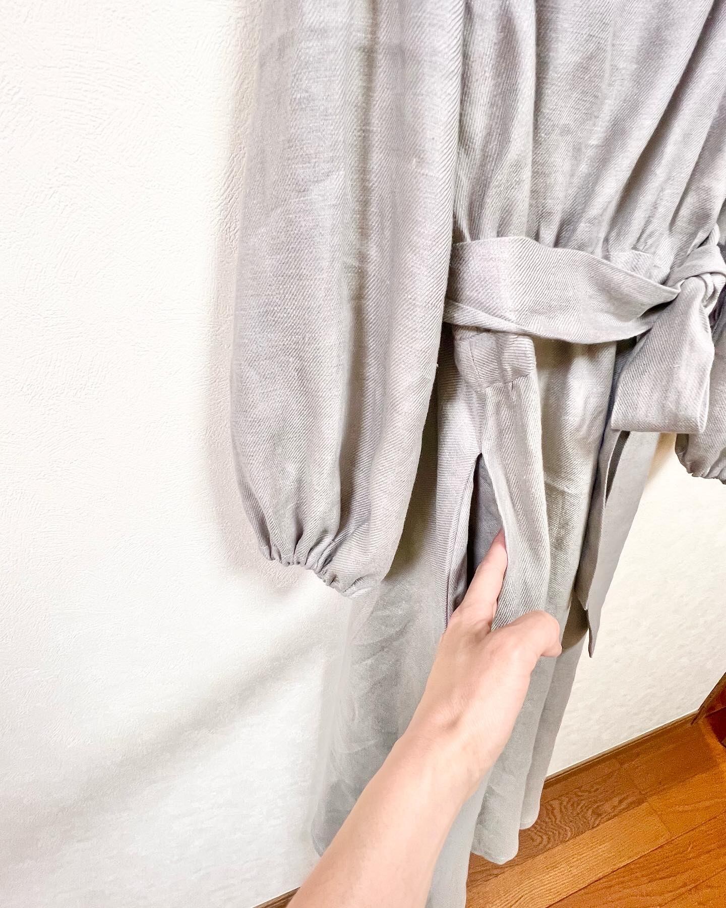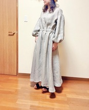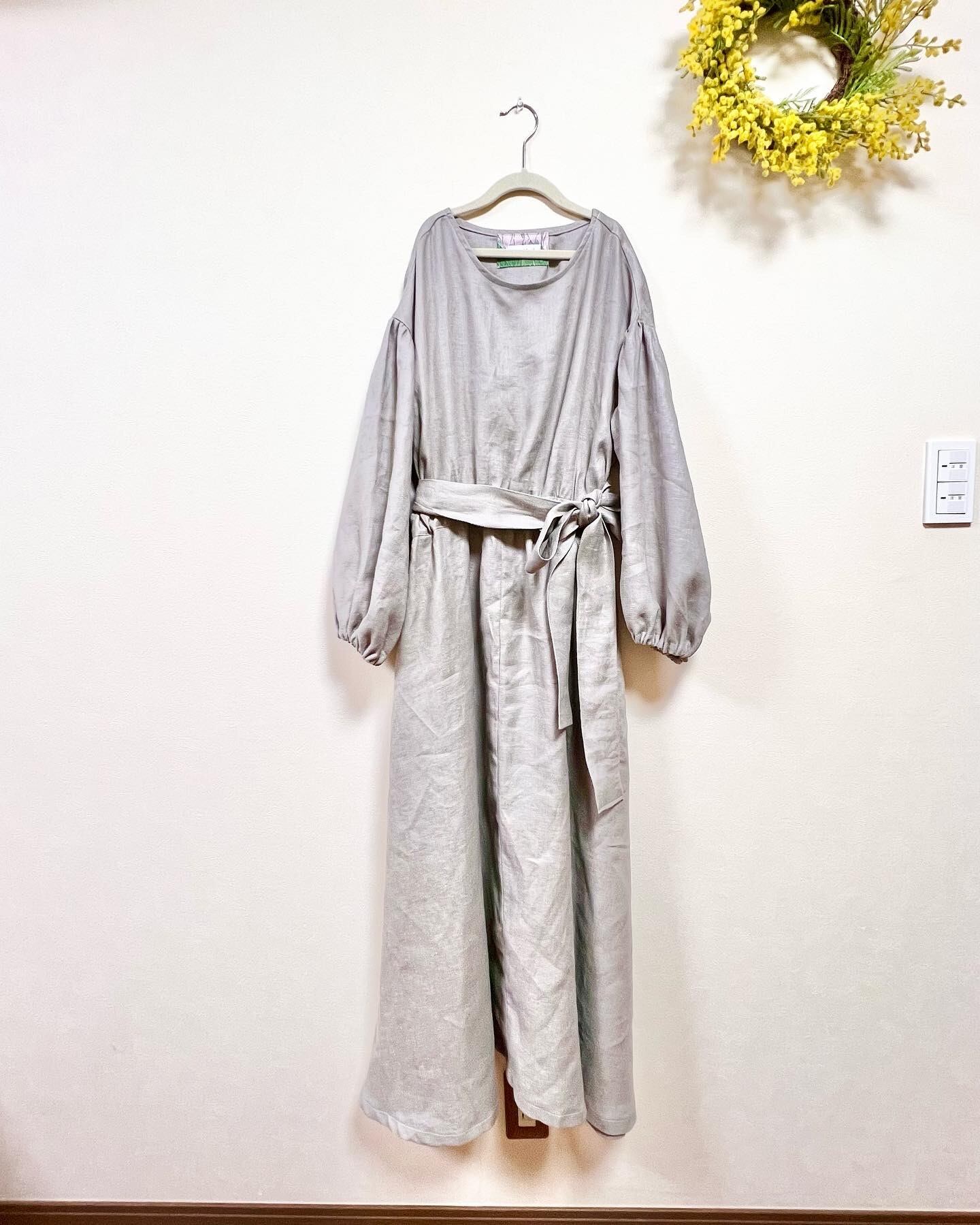 袖口にゴムが通ってるので、ぐっと上に上げるとボリューミーな半袖にもなり、インナー次第で1年を通して活躍するワンピです✨