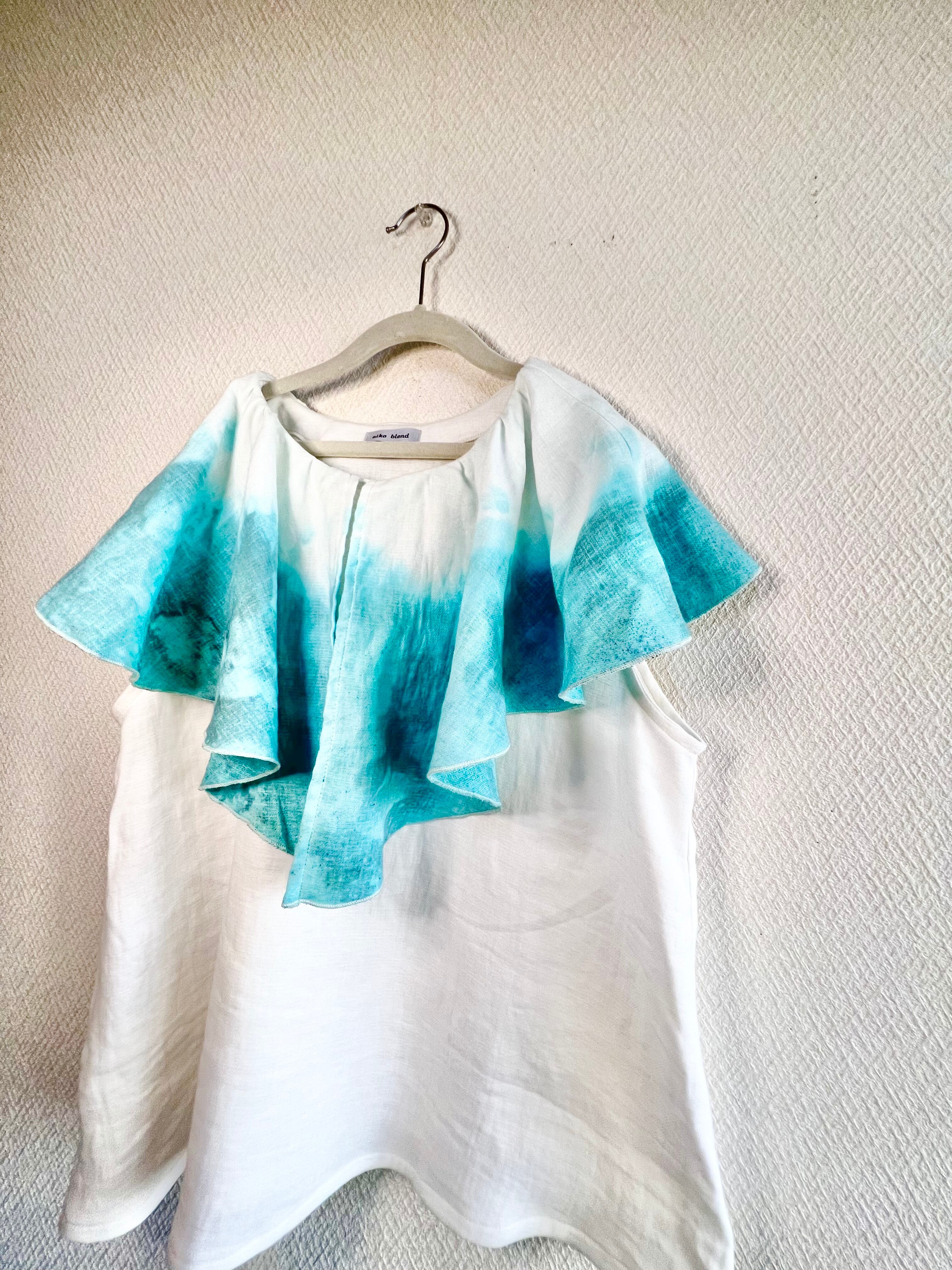 カキ氷シロップをかけたような涼しげなトップスを作りました。