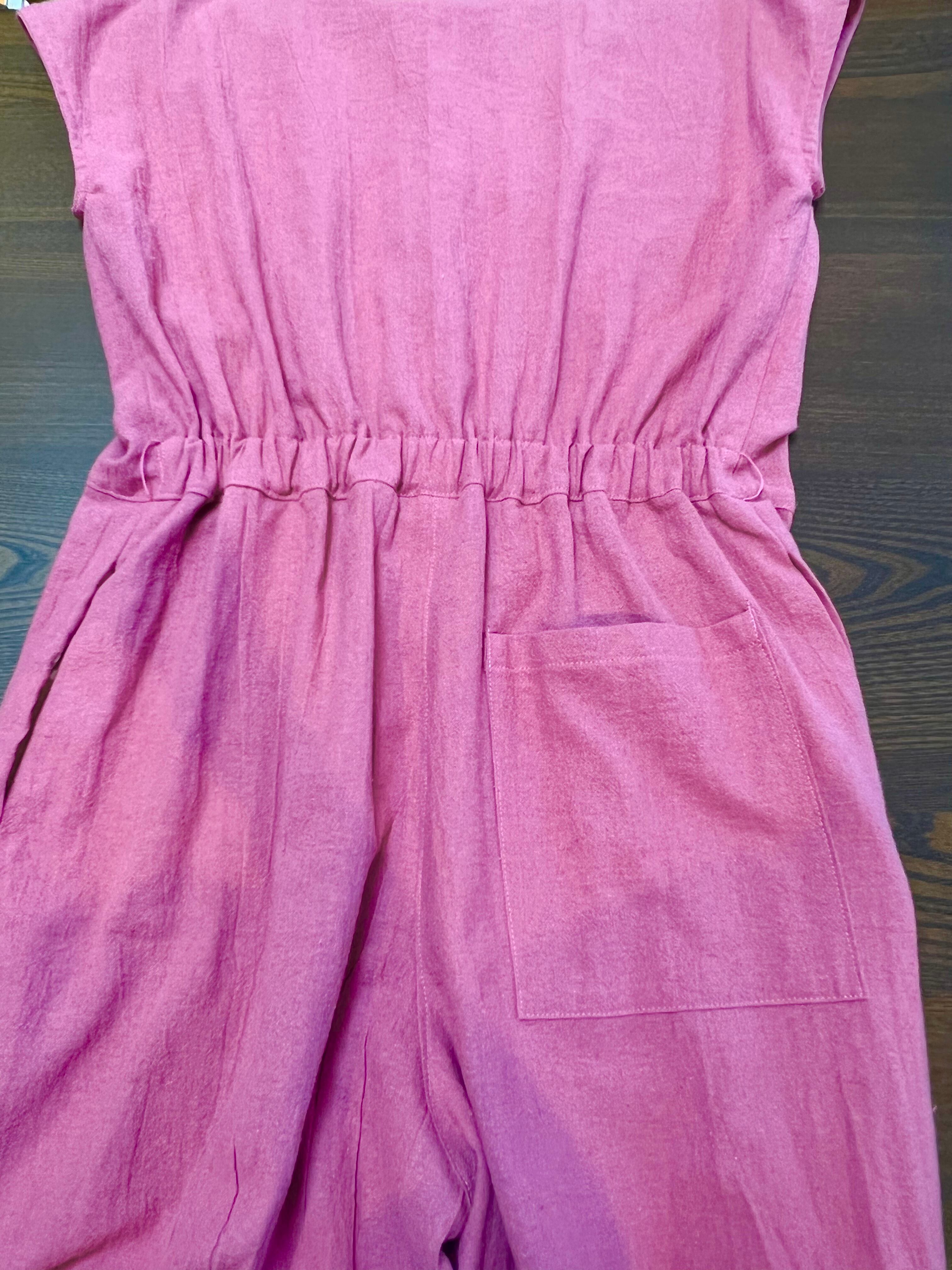 ウォッシュ加工が施されたリネンでオールインワンを作りました。