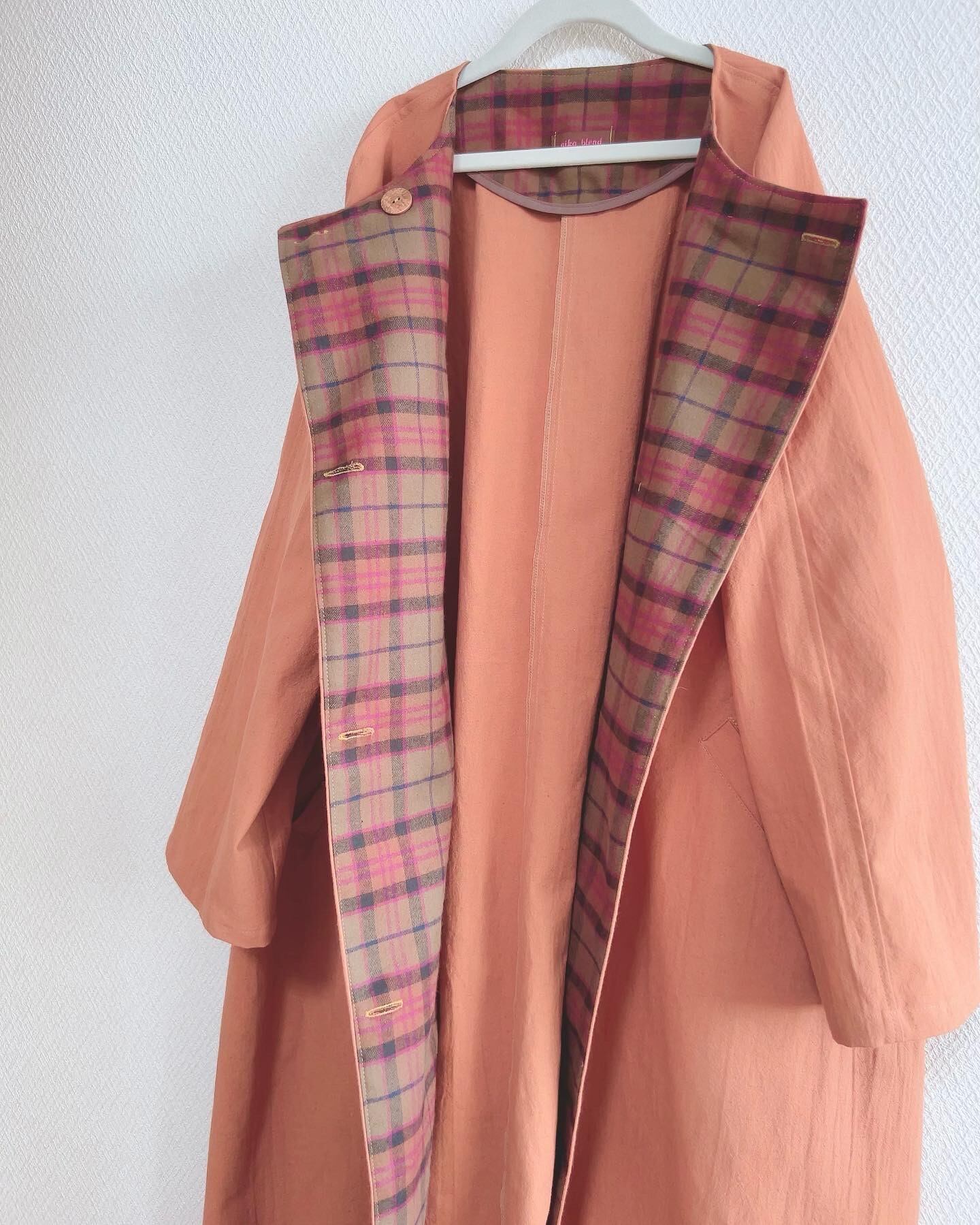赤みがかった明るいテラコッタカラーは顔まわりを