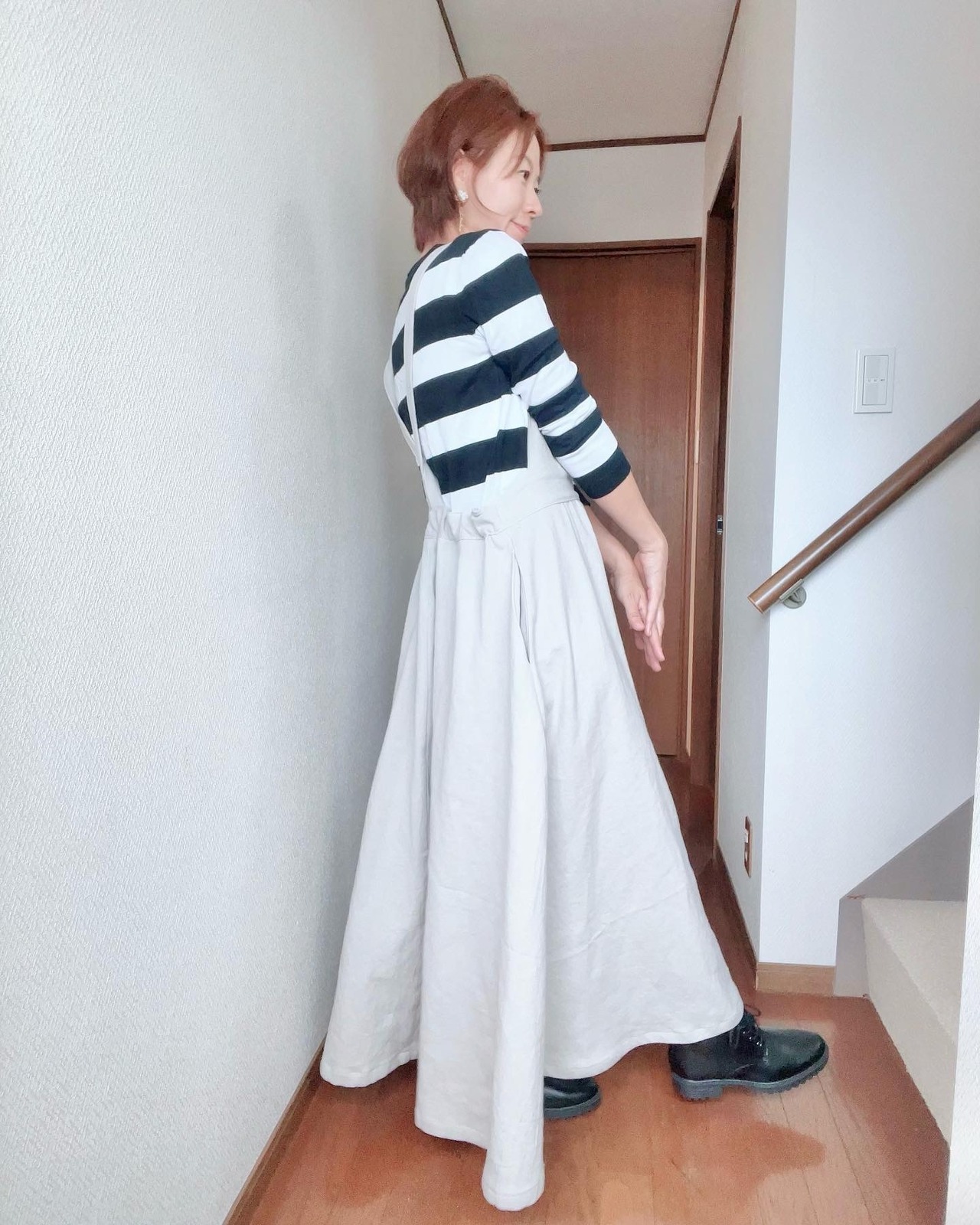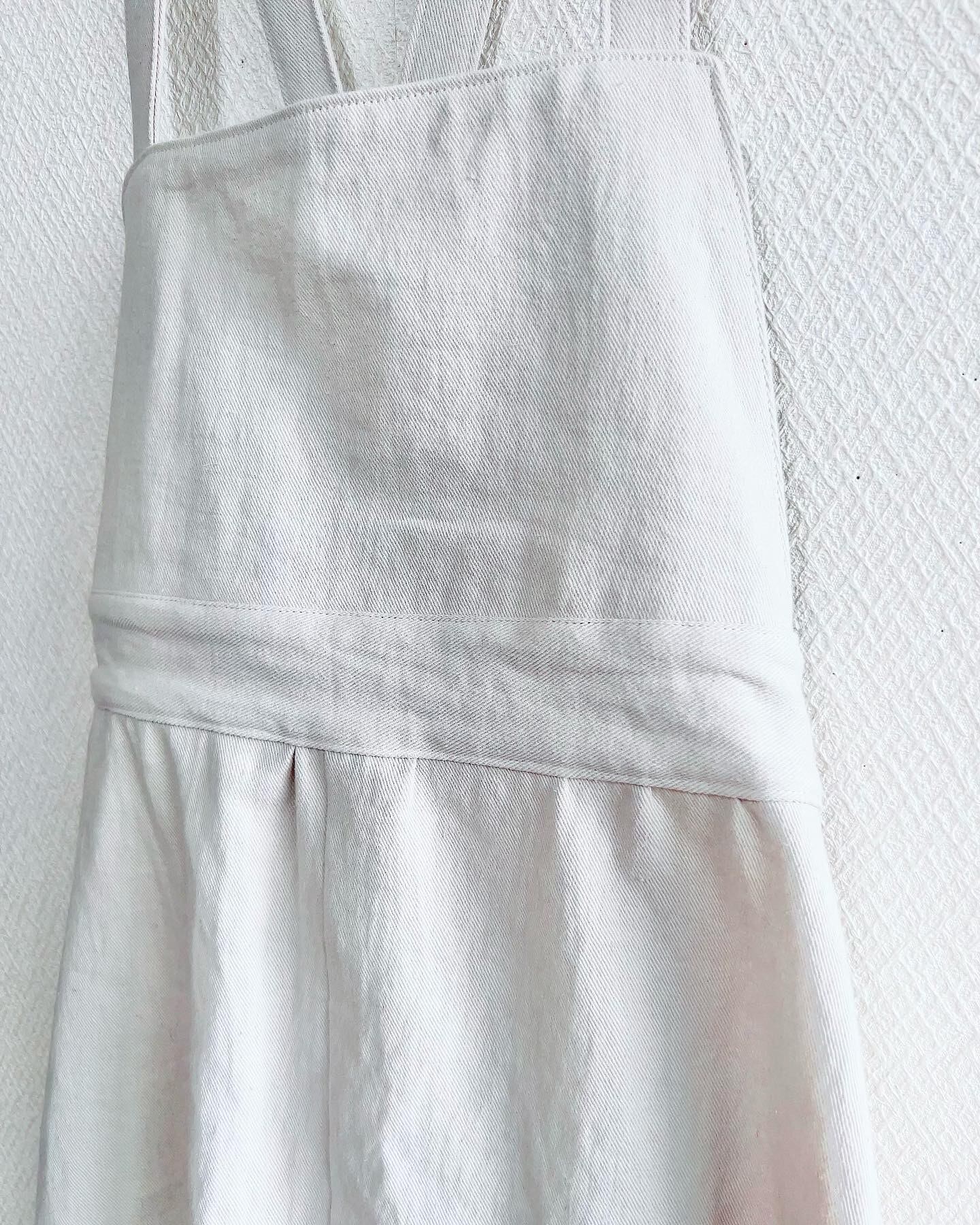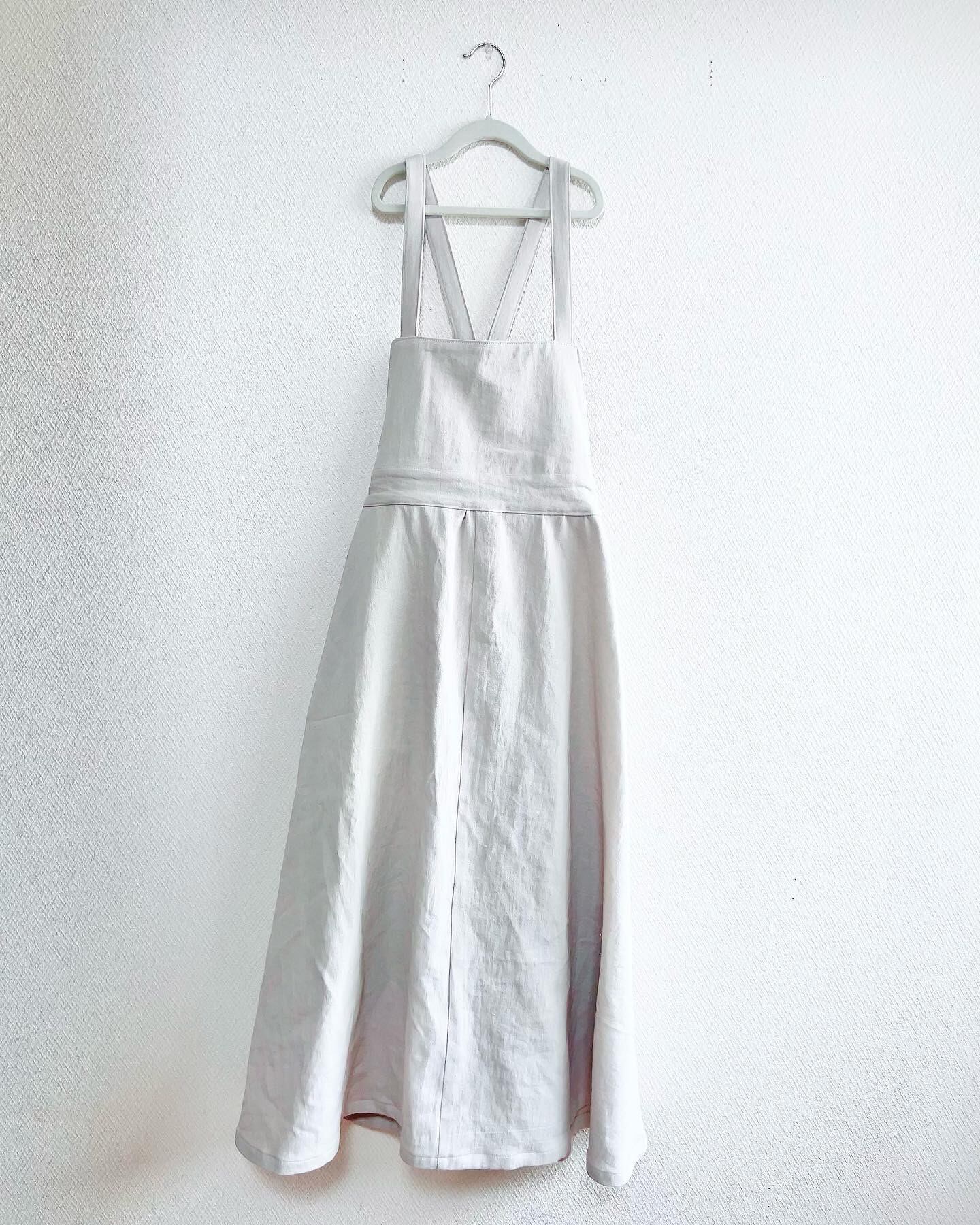 オフホワイトのハーフリネンでスタイルアップ間違いなしの大人のサロペットスカートを作りました。